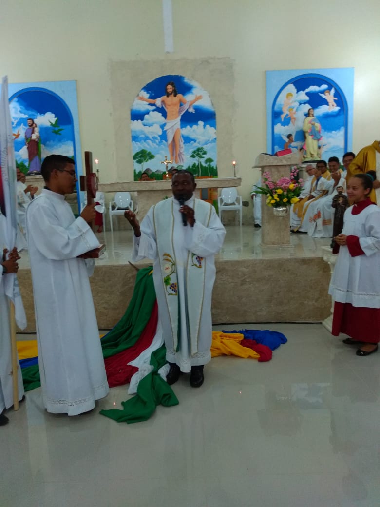 A abertura oficial do mês missionário extraordinário outubro/2019, teve o seu ponto alto com a Santa missa, presidida pelo Mons. Raimundo Brito, vigário geral da diocese e concelebrada pelos demais padres, finalizando com a entrega das cruzes missionárias e das bandeiras confeccionadas pela diocese para este tempo de Deus em nossa vida.